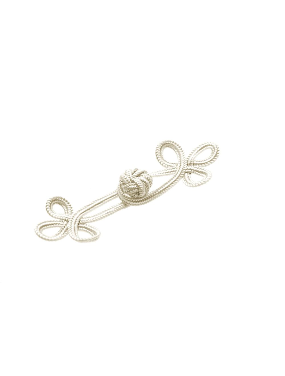 Alamari passamaneria, chiusura ad alamaro realizzata interamente a mano, terminale di forma classica ideale per abbigliamento. Misura unica.