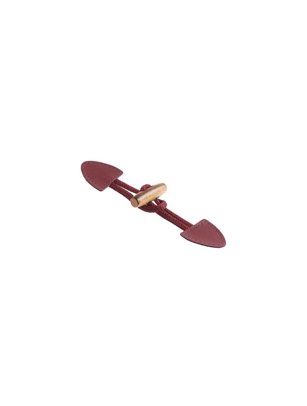 Alamaro in imitazione cuoio, con oliva tagliata in legno di olivo bruciato per abbigliamento e pelletteria. Misura Oliva: 40 mm.