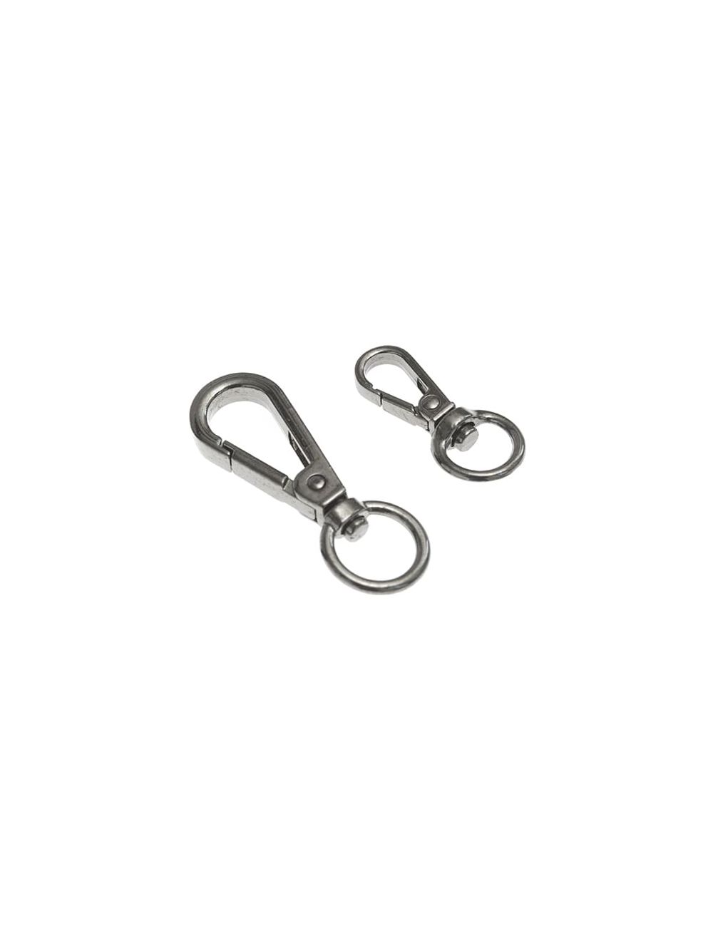 Moschettone in metallo zama, disponibile in NICKEL-FUME'-ORO-OTTONE VECCHIO finitura lucido. Passo interno: 9 - 12 mm.