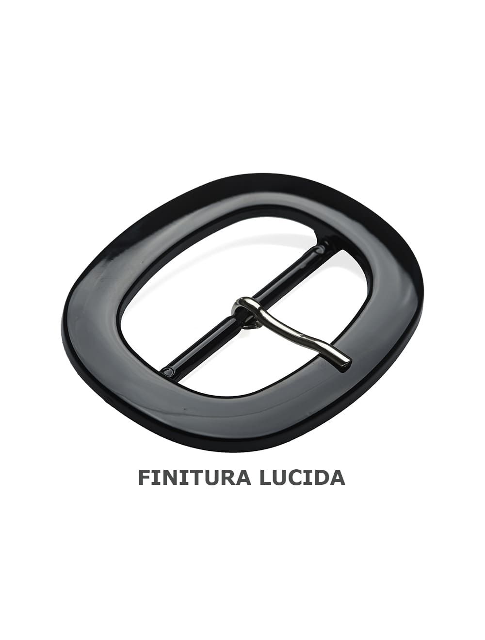 Fibbia in plastica sintetica, colore nero lucido con ardiglione Nickel, passo interno: 70 mm.
