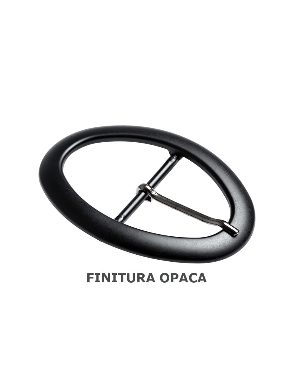 Fibbia in plastica sintetica, colore nero opaco con ardiglione Fumè, passo interno: 50 mm.