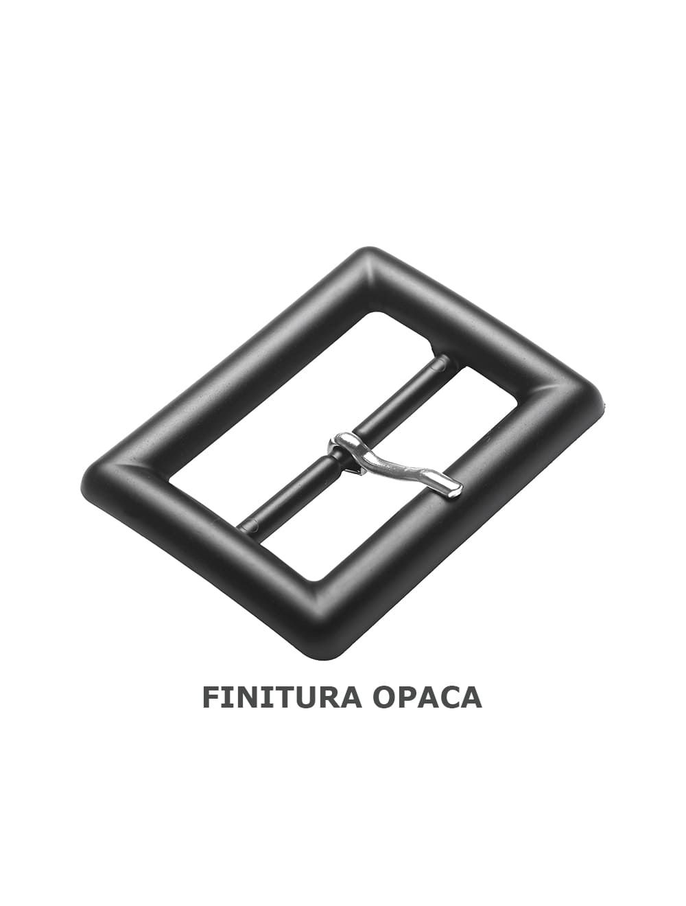 Fibbia in plastica sintetica, colore nero opaco con ardiglione Fumè, passo interno: 80 mm.