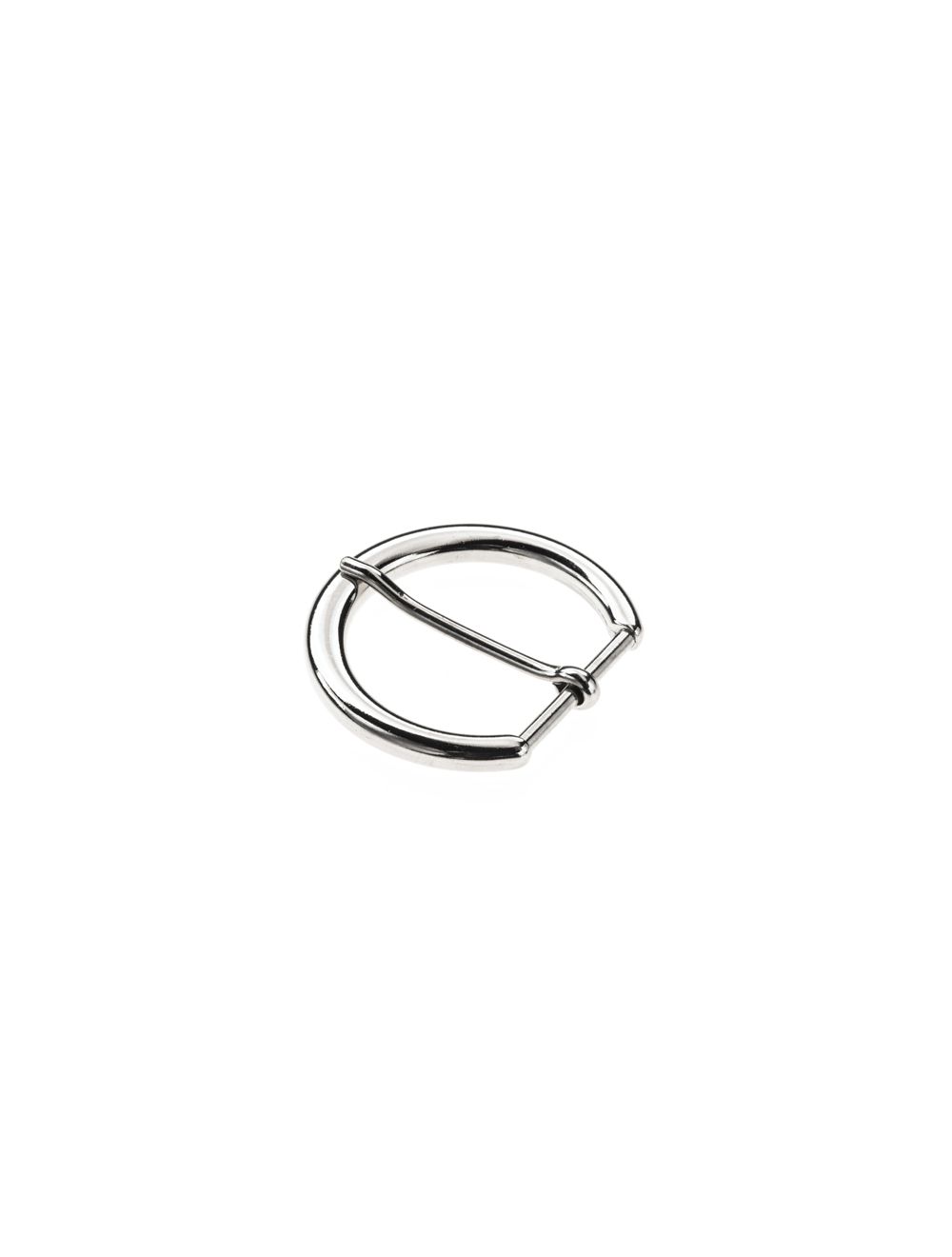 Fibbia rotonda in metallo zama, disponibile con finitura NICKEL-FUME'-OTTONE VECCHIO e passo Interno mm 30