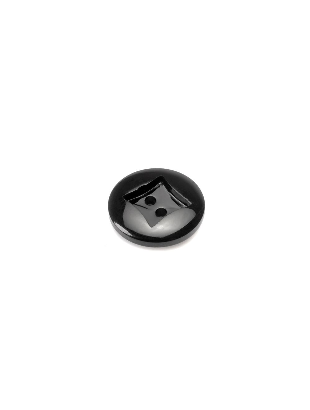 Bottone 2 fori, materiale poliestere, finitura nero lucido, disponibile nei lineati: 18 - 28.