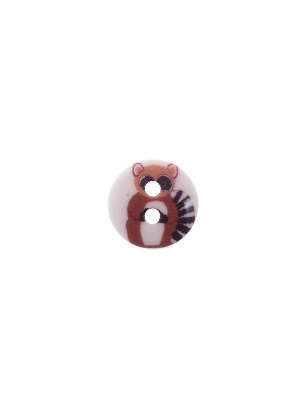 Bottone bambino/decorativo con 2 fori, forma piattina con disegno procione simpatico finitura lucido