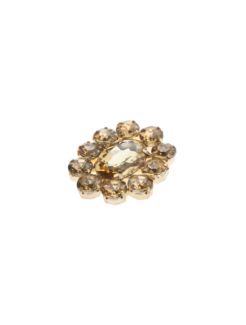 Bottone gioiello con gambo, materiale ottone con inserti in cristallo, disponibile in Nickel+black diamond - Nickel+cristallo - Oro+light colorado topaz, misura unica 38x46mm