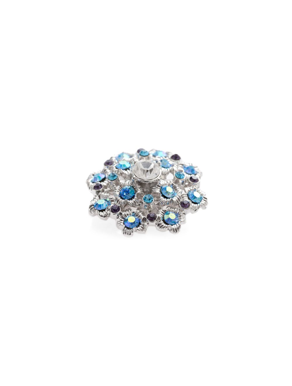 Bottone gioiello con gambo, materiale zama con elementi di cristallo, disponibile in Nickel+crystal+montana, misure: I mis. mm 21 - II mis. mm 27