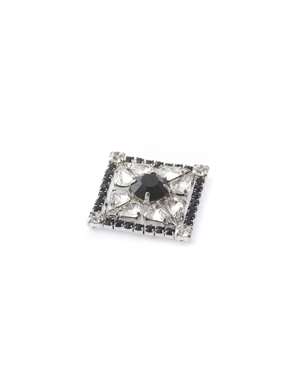 Bottone gioiello quadrato con gambo, materiale ottone con elementi in cristallo, disponibile in Nickel+cristalo+jet, misure : I mis. 20mmx20mm - II mis. 25mmx25mm