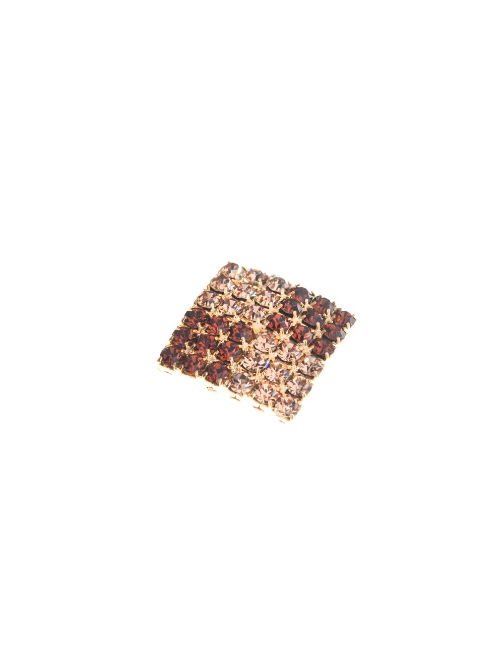Bottone gioiello quadrato con gambo, materiale ottone con elementi di cristallo, disponibile in Oro+smoked topaz+light colorado topaz - Nickel+crystal+jet - Nickel+crystal+montana, misure: I - II - III