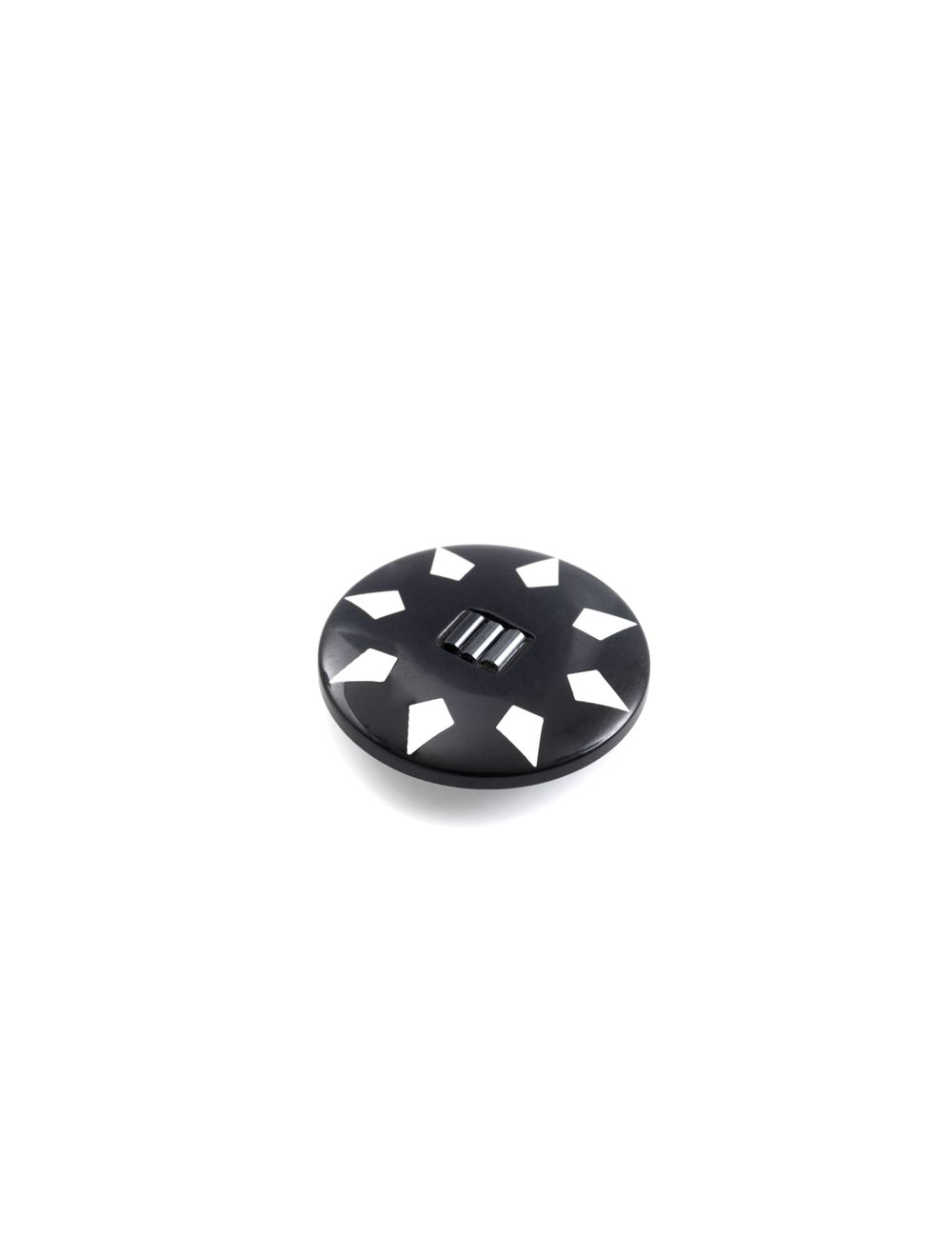 Bottone colato con gambo, materiale poliestere con lavorazione laser e canottiglie, disponibile nei lineati: 28 - 36 - 44.
