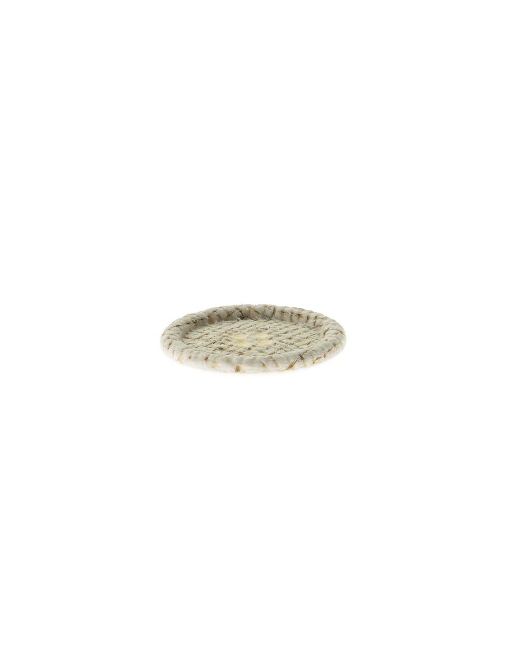 Bottone ecologico decorativo opaco 4 fori, realizzato con segatura di legno e con fibre di juta disegno tipo intreccio disponibile nel lineato 54