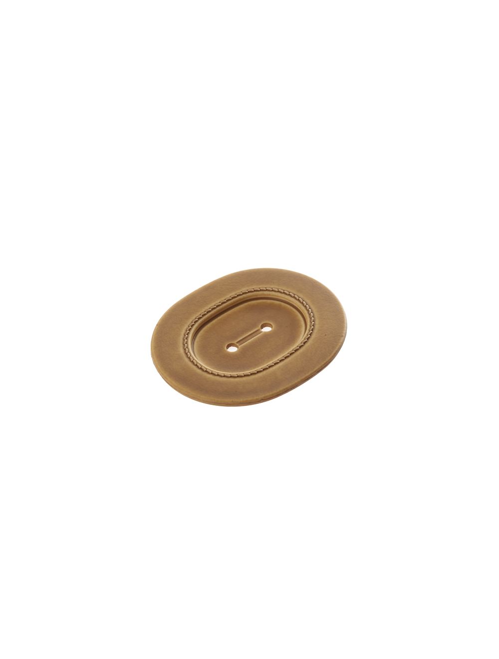 Bottone in nylon decorativo 2 fori, forma ovale con cucitura e bordo piatto finitura imitazione rafia disponibile nel lineato 110