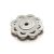 Bottone automatico da cucire, con chiusura a pressione in materiale zama bordo esterno tipo fiore disponibile nel lineato 32 e 44 con finitura in fumè-oro paglierino-nickel.